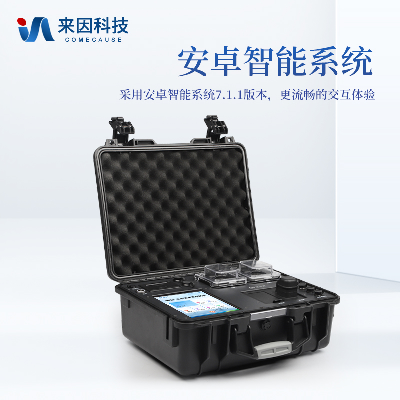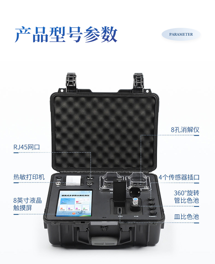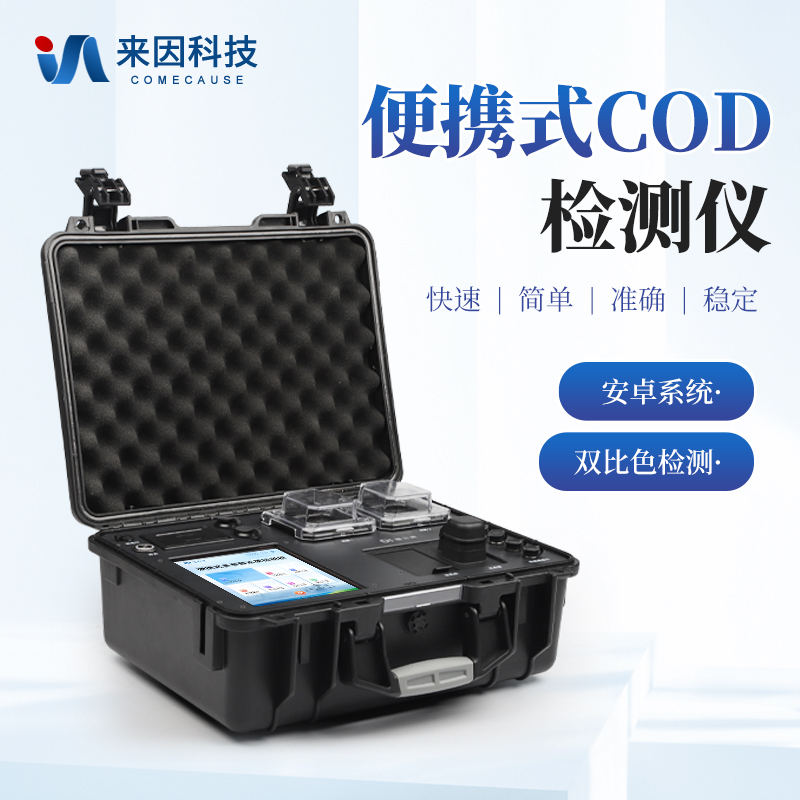 便携式COD检测仪采用高强度PVC工程塑料手提箱设计,消解检测一体式设计,其中消解模块具备双温区功能,检测部分同时具备360°旋转比色管检测和比色皿检测,安卓智能操作系统,8英寸高清液晶触摸屏,光纤检测技术,进口光源,内置大容量锂电池,便携多参数水质检测仪具有性能稳定、测量准确、测定范围广、功能强大、操作简单等特点。