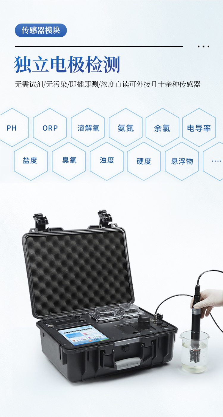 简要描述: 便携式COD测定仪IN-BC采用高强度PVC工程塑料手提箱设计,消解检测一体式设计,其中消解模块具备双温区功能,检测部分同时具备360°旋转比色管检测和比色皿检测,安卓智能操作系统,8英寸高清液晶触摸屏,光纤检测技术,进口光源,内置大容量锂电池,便携多参数水质检测仪具有性能稳定、测量准确、测定范围广、功能强大、操作简单等特点。